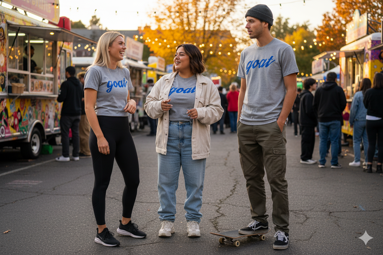 From the neighborhood that started it all. The Guilt! "Goat Mountain" Short Sleeve Tee pairs a gray base with our blue "goat" script up front and full back screenprint color graphic from Guilt! Two goats on a boulder with our tagline, "They Don't Get Us" chisled in stone. Limited Edition for the ones that get it.