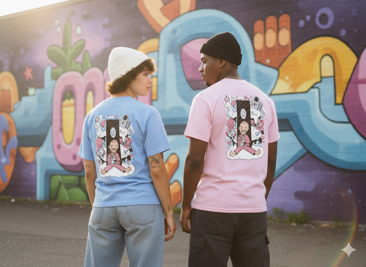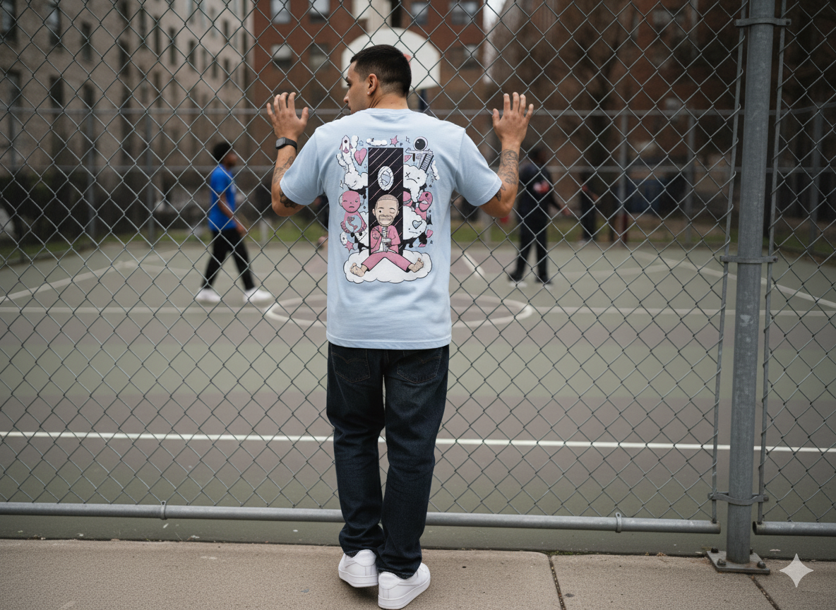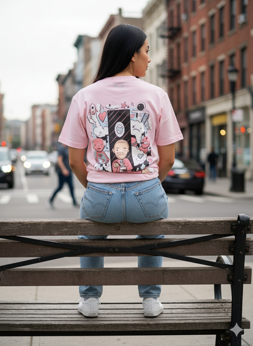 Wax Works by Goat Street Goods is a line of music albums reimagined in art. Edition 001 features artist Guilt!'s interpretation of Mac Miller's Swimming. Front chest "Guilt! For Goat Street Goods round logo. Full color artwork on the back. Printed using DTG (Direct To Garment) for rich detail. Limited Edition.